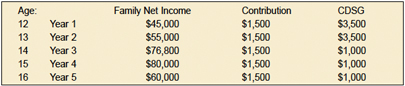 This chart illustrates how a family’s annual income and contribution amount determines the CDSG: