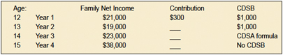 This chart illustrates how a family’s annual income and contribution amount determines the CDSB: