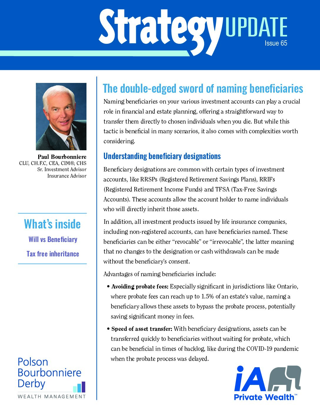 We've built a reputation as one of Canada's premier advisory practices focusing on retirement income planning by staying focused on achieving our clients' goals...